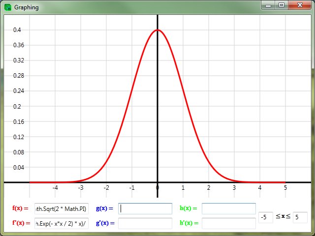 The above image is a graph of the Gaussian bell curve / normal probability distribution created by my graphing tool available here. The x-axis represents a movement away from the mean, and the y-axis represents the probability of that move occurring. The integral of the normal distribution from −∞ to +∞ is 1 i.e. the y value represents a percentage.