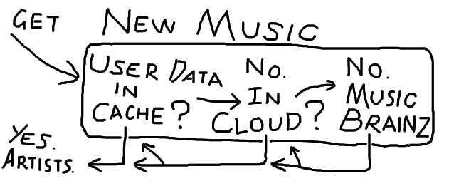 Those who read the previous blog post when this was an initial idea might recall one quite bad shortcoming. I'm getting data from MusicBrainz who ask users to send only one request per second. Fair enough really, they're hosting the details of every bit of music ever produced, like, ever. I therefore only ever want to ask MusicBrainz about an artist once and only go back to update at timely intervals. All album information from the last three years - I'm only really interested in telling users about new releases - gets committed to my Mongo DB instance. Further to that, I also use Microsoft Enterprise Library to automate caching user data (though after looking for a link to the documentation, I discover that new projects should use the functionality in the System.Runtime.Caching namespace). Once a user checks their list, they can come back any time and unless the load on the server is busy, their artists will still be in memory. An added bonus is that any artist they're interested in will as a consequence be stored for all other users.