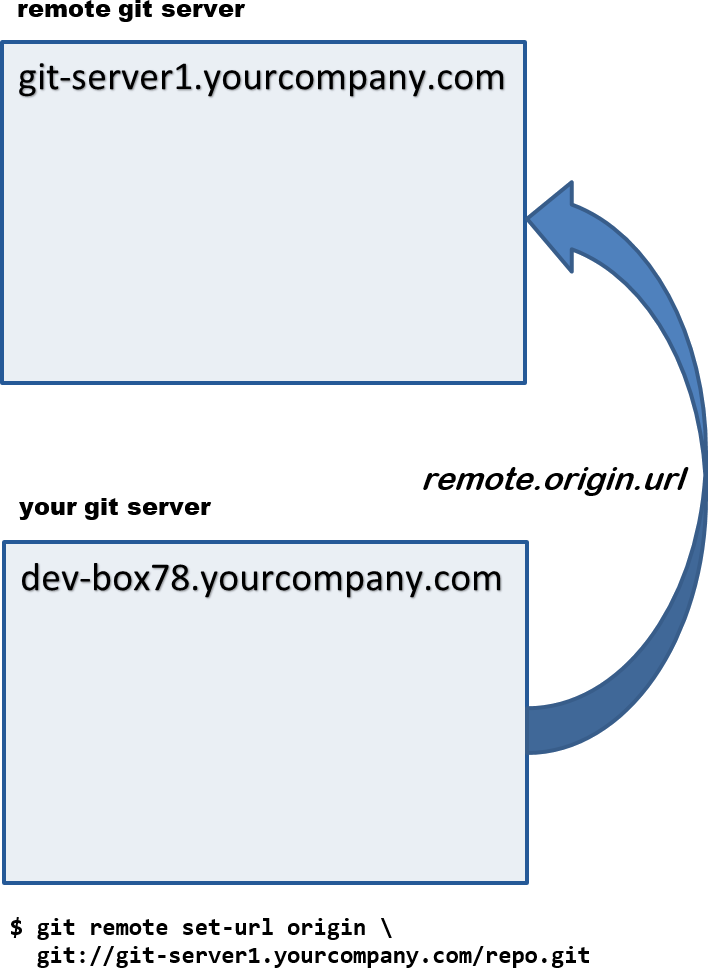 The origin repo is one of many git configuration variables and can be altered or set at any time. Your development environment will have any number of repos, and each of which will have their own origin repo.